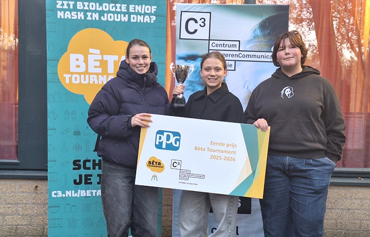 Het Bèta Tournament is een landelijke wedstrijd die plaatsvindt in professionele laboratoria waar leerlingenteams uit het derde en vierde jaar van het vmbo experimenten uitvoeren. Er deden 22 scholierenteams mee. Scholen kunnen hun leerlingen nog aanmelden voor edities van het Bèta Tournament in januari, februari en april 2026. Meer informatie over locaties, data en inschrijving staat op c3.nl/betatournament.