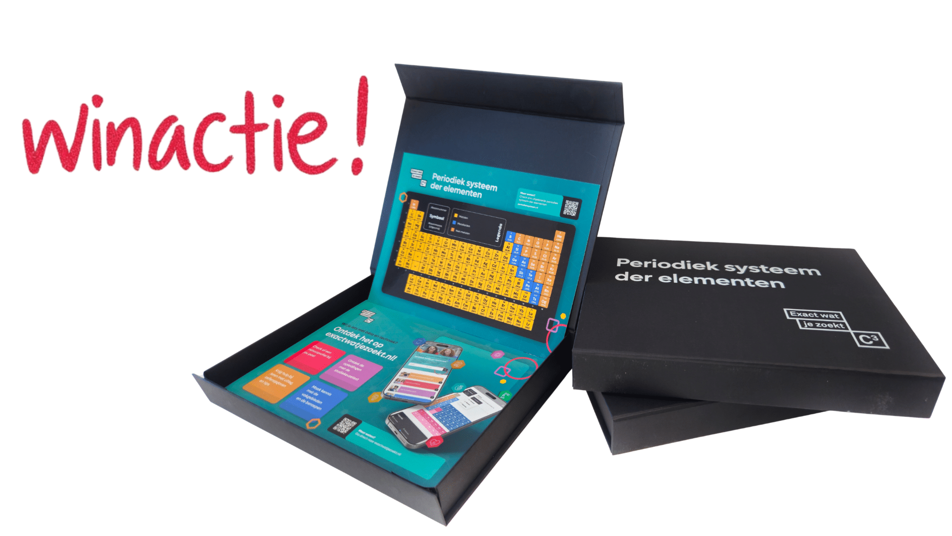Ben jij scheikundedocent of TOA en op zoek naar handige, herbruikbare materialen voor je les? Doe mee aan onze winactie en maak kans op 1 van de 25 doosjes met herbruikbare periodiek-systeemkaartjes! De kaartjes zijn speciaal ontworpen zodat ze ook bruikbaar zijn in de onderbouw en ideaal voor gebruik tijdens practica, uitleg, en toetsen. Ze sluiten perfect aan op het periodiek systeem dat je online kunt vinden via exactwatjezoekt.nl.